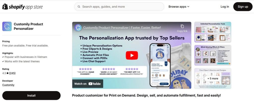 Head to the Shopify App Store, search for Customily, and click “Add app” to install it.
